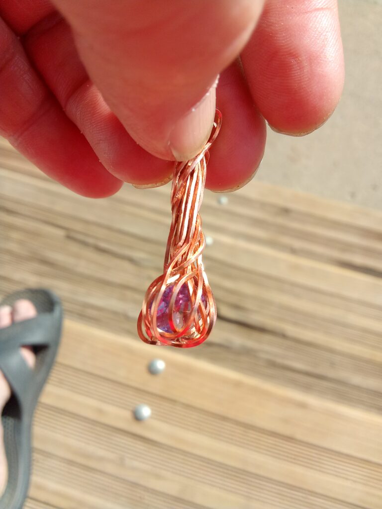 So what happens when you let your energy and feelings flow into a piece with abandon? Well, in my case, you get something like Cascade. This pendant features a faceted natural amethyst stone that is surrounded by a single copper wire, flowing around it to create a simple, yet beautiful pendant.