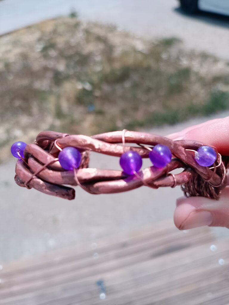 Life can be a struggle sometimes. It’s full of twists and turns and unexpected events. Especially now. And that’s what inspired this bracelet. Made by combining resilient and connective copper with calming and healing amethyst, this bracelet carried the dreams and passions of life as it was forged, twisted, hammered, and polished. It is designed for those who have seen it all, and still come back with a gentle smile.